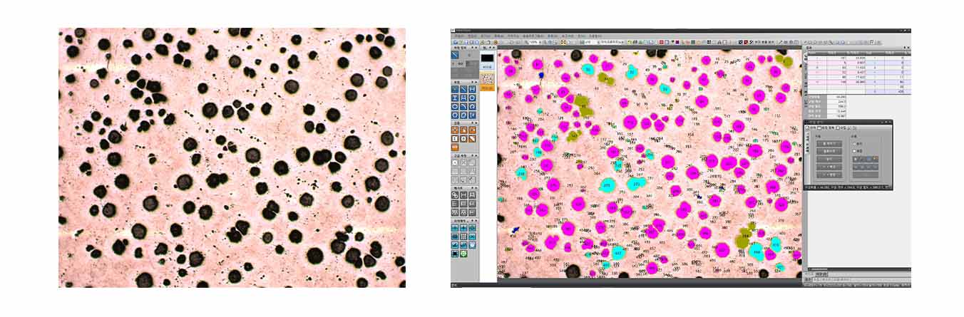 Graphite Type 및 구상화율을 자동을 가장 빠르고 정학화게 산출합니다.