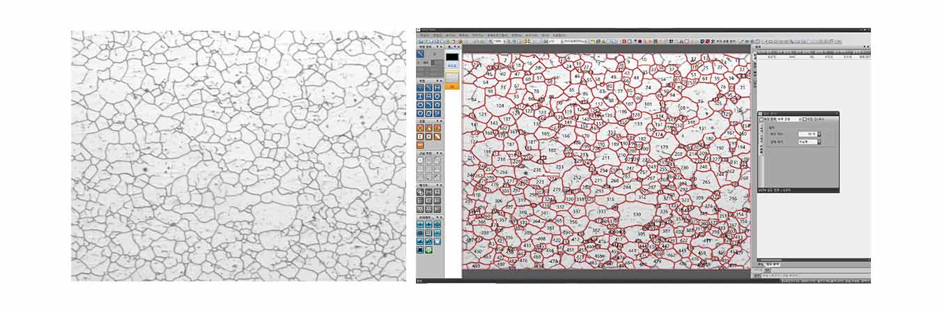 Line Intercept 기능 및 Planimatric 기능 모두 지원하며 자동 Grain 재구성 기능을 제공하여 가장 빠르고 정확한 데이터를 산출합니다.